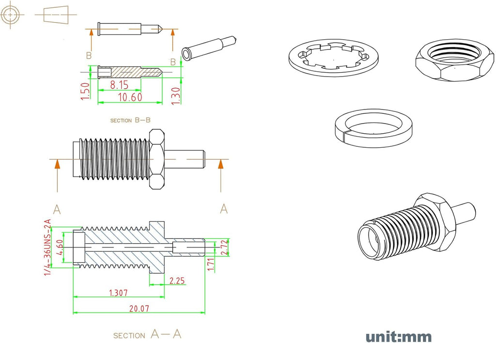 - Connector: RP-SMA female (outside threads with male inner pin); Termination: cable-crimp; Impedance: 50ohm