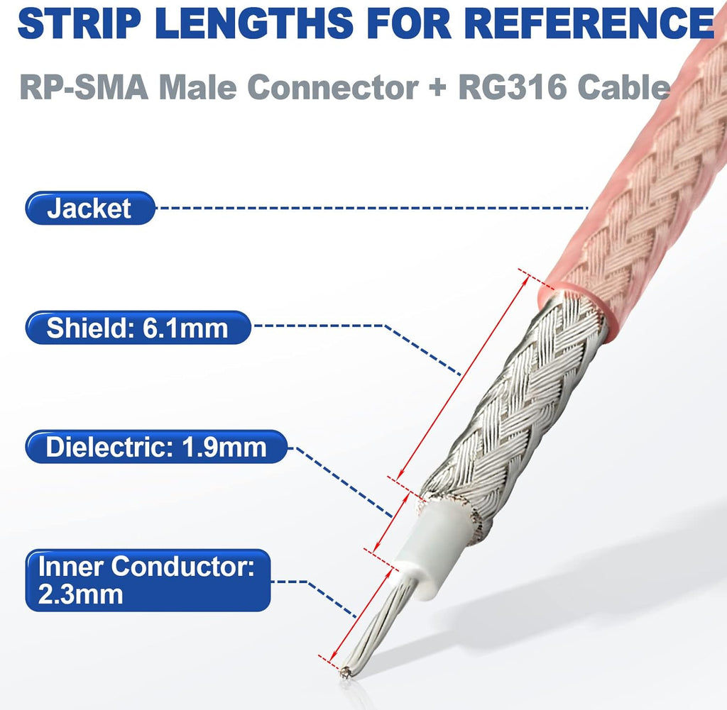 - Package includes:10pcs RG316 RP-SMA male connectors + 10pcs heat thrink tubes