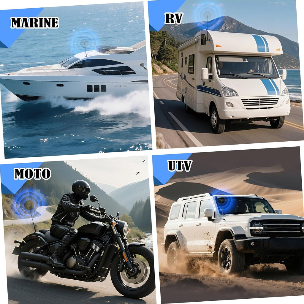 - Application: Compatible with a wide range of radio stereos, this antenna fits most car, boat, RV, ATV, UTV, tractor, motorhome, motorcycle, golf cart, yacht, sailboat, pontoon,etc