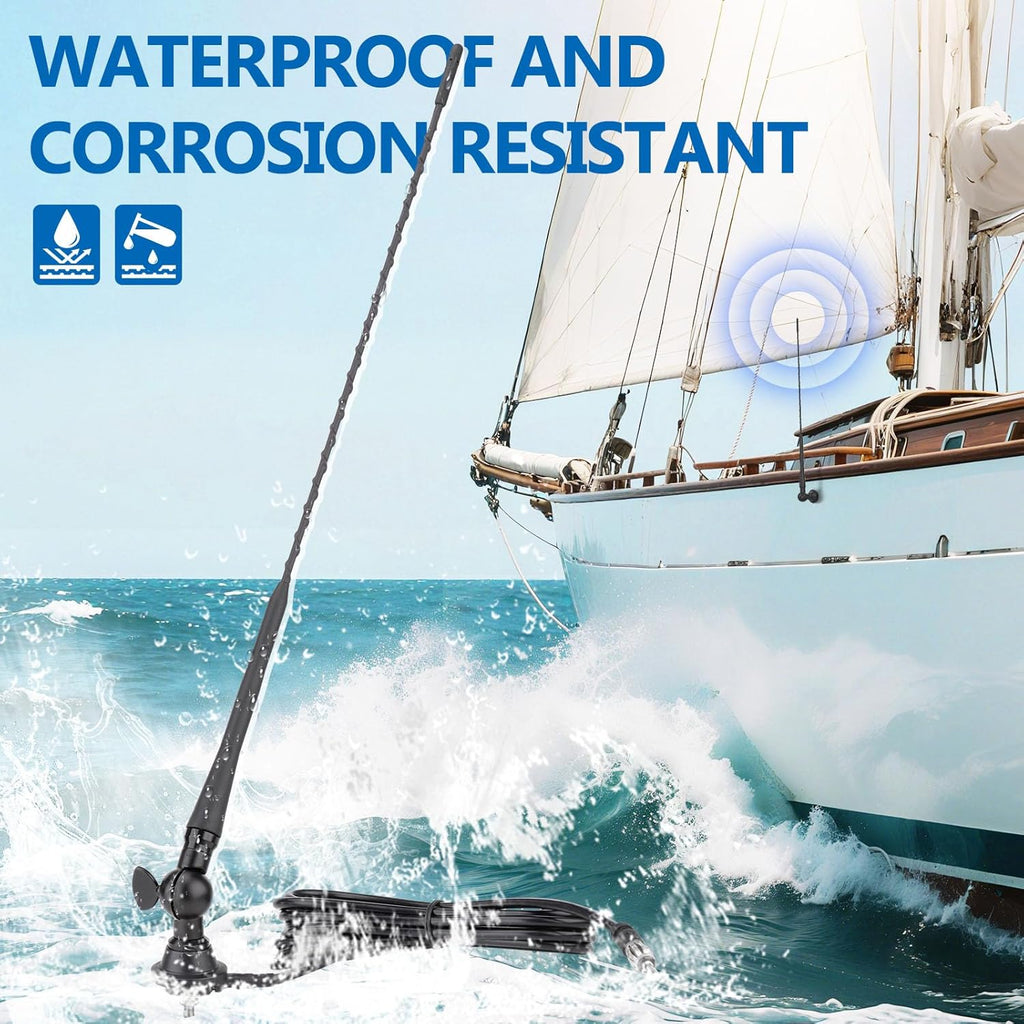 - Weatherproof & Durable: Made with waterproof and corrosion-resistant materials, this antenna is built to withstand harsh marine environments and all weather conditions, ensuring reliable performance year-round