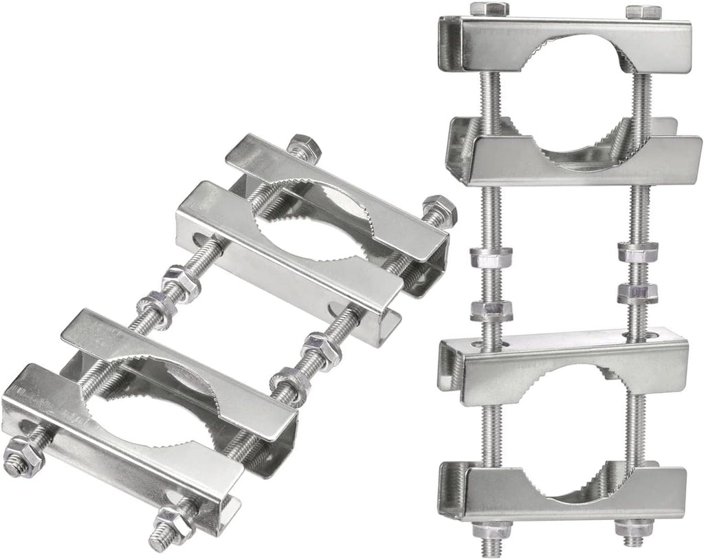 - Package Includes: 2 sets of antenna mast clamps (8pcs v-jaw brackets, 4pcs long screw rods, 12pcs nuts)