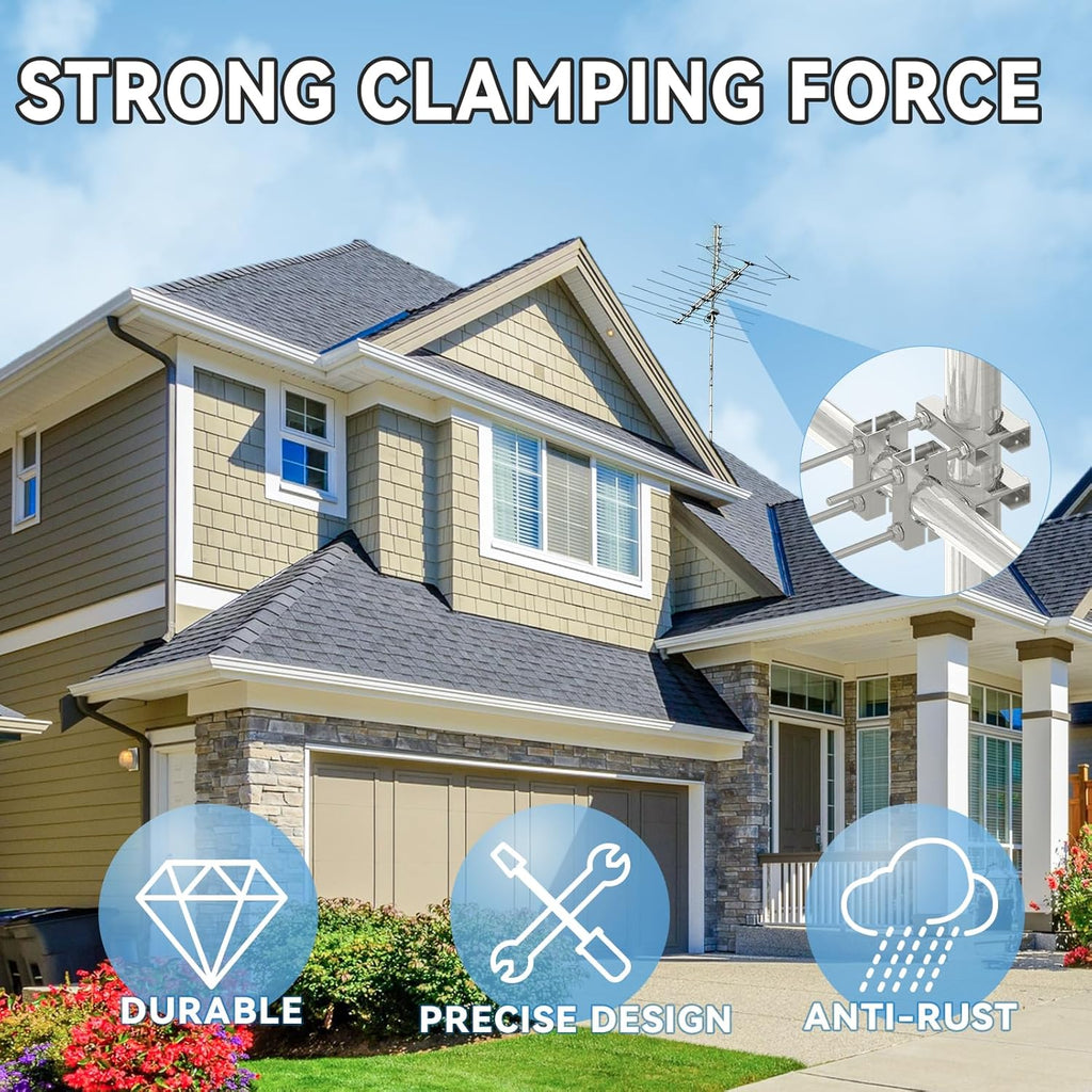 - Strong Clamping Force: The clamp kit uses V-jam brackets to securely grip pipes and antennas, ensuring a stable hold even in windy conditions
