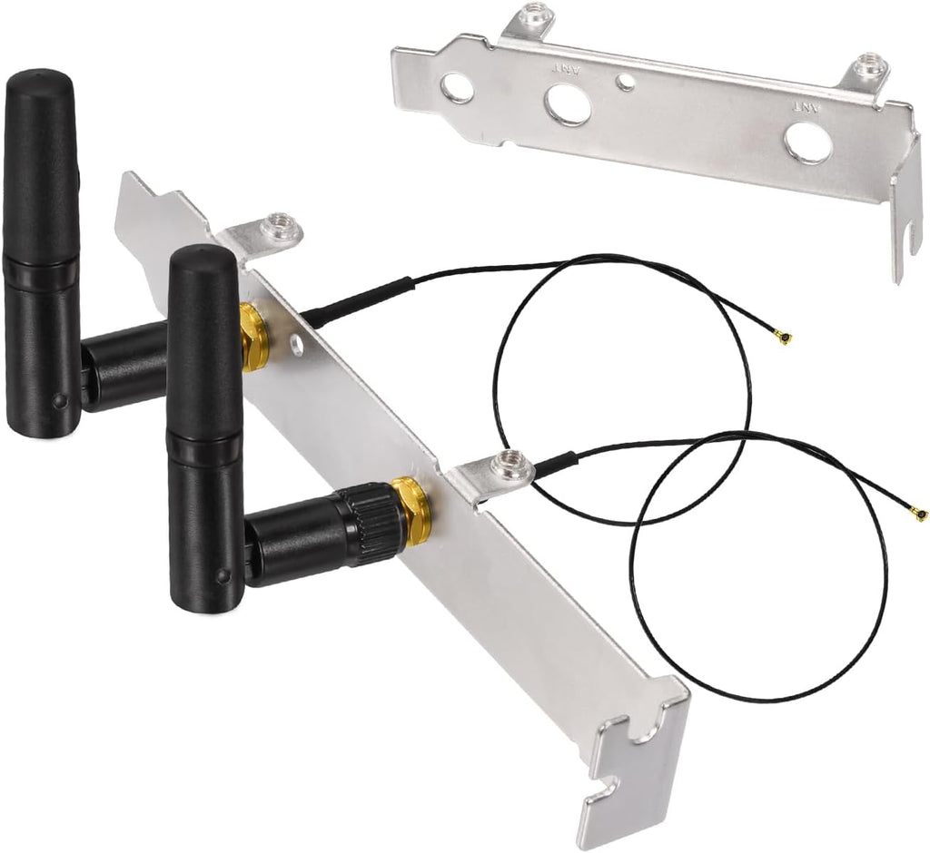 - Package Includes: 2pcs 2.4GHz and 5GHz WiFi antennas, 2pcs MHF4 IPEX to RP-SMA cable leads 25cm/10in, and 2pcs computer back slot cover brackets