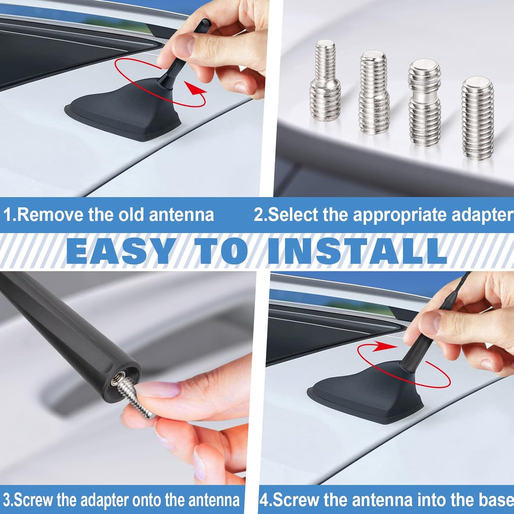 - Antenna Mast Replacement: Comes with 4 screw adapters for compatibility with most roof-mounted vehicle installations, including cars, trucks, tractors, hatchbacks, SUVs and campers
